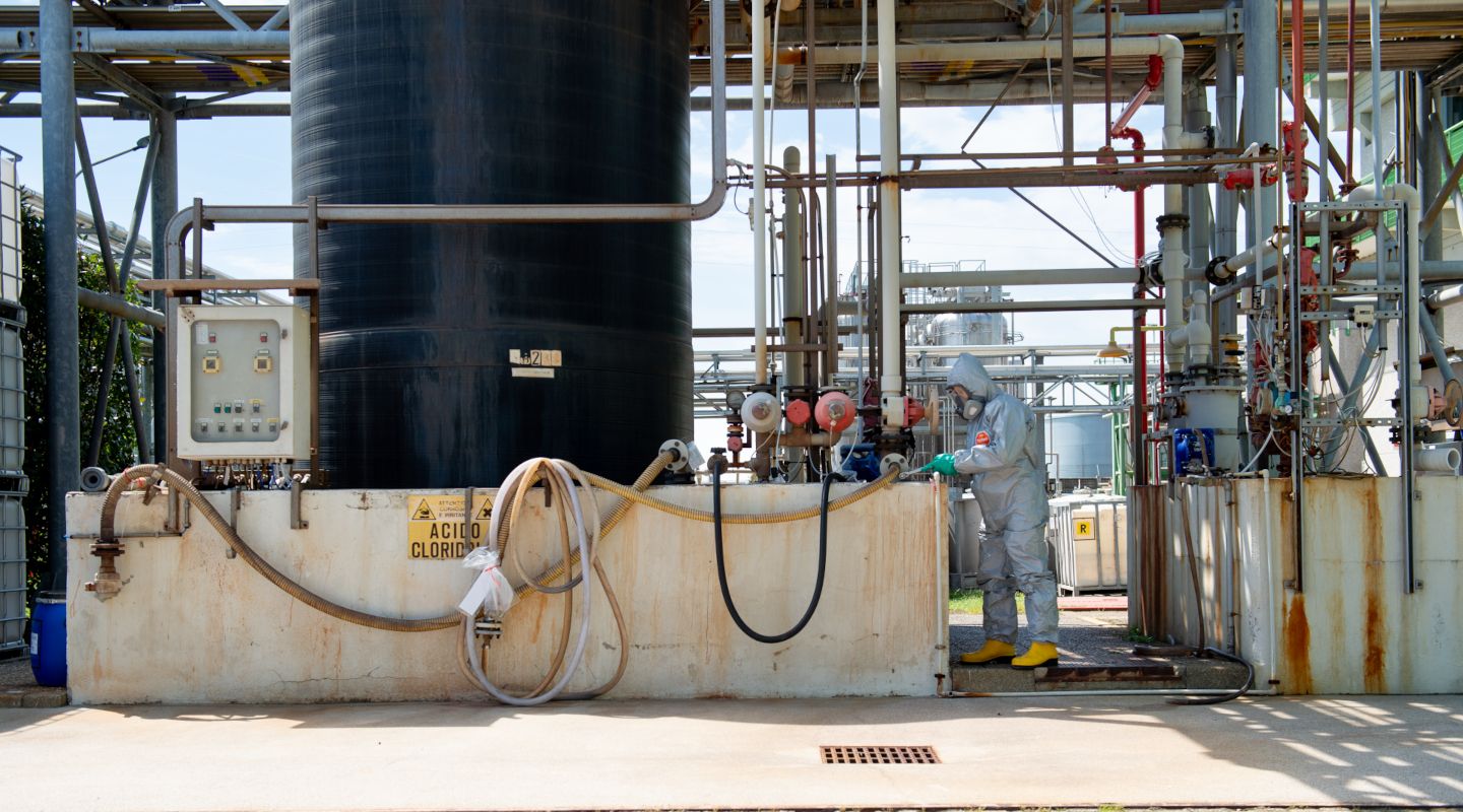 Aşındırıcı temizlik maddelerinin kullanıldığı faaliyetler sırasında PROCOS bakım çalışanlarını korumak için DuPont™ Tychem® 6000 F tulumlar seçildi. Tychem® 6000 F, ilaç üretiminde kullanılan organik çözücüler gibi çeşitli asitlere karşı yüksek direnç sağlayan ve zorlu fiziksel görevlere dayanacak mekanik dayanıma sahip çok katmanlı bir bariyer malzemesidir. Yüz, bilekler, bel ve ayak bilekleri çevresindeki lastiklere ek olarak, bu tulumlarda kolların yukarı kaymasını önleyen başparmak halkaları ve yüz maskeleriyle sıkı bir sızdırmazlık sağlayan kendinden yapışkanlı çene kapağı bulunur. Kategori III kimyasal koruma sağlayan bu ürün, bulaşıcı maddelere karşı EN 14126 sertifikasına sahiptir.